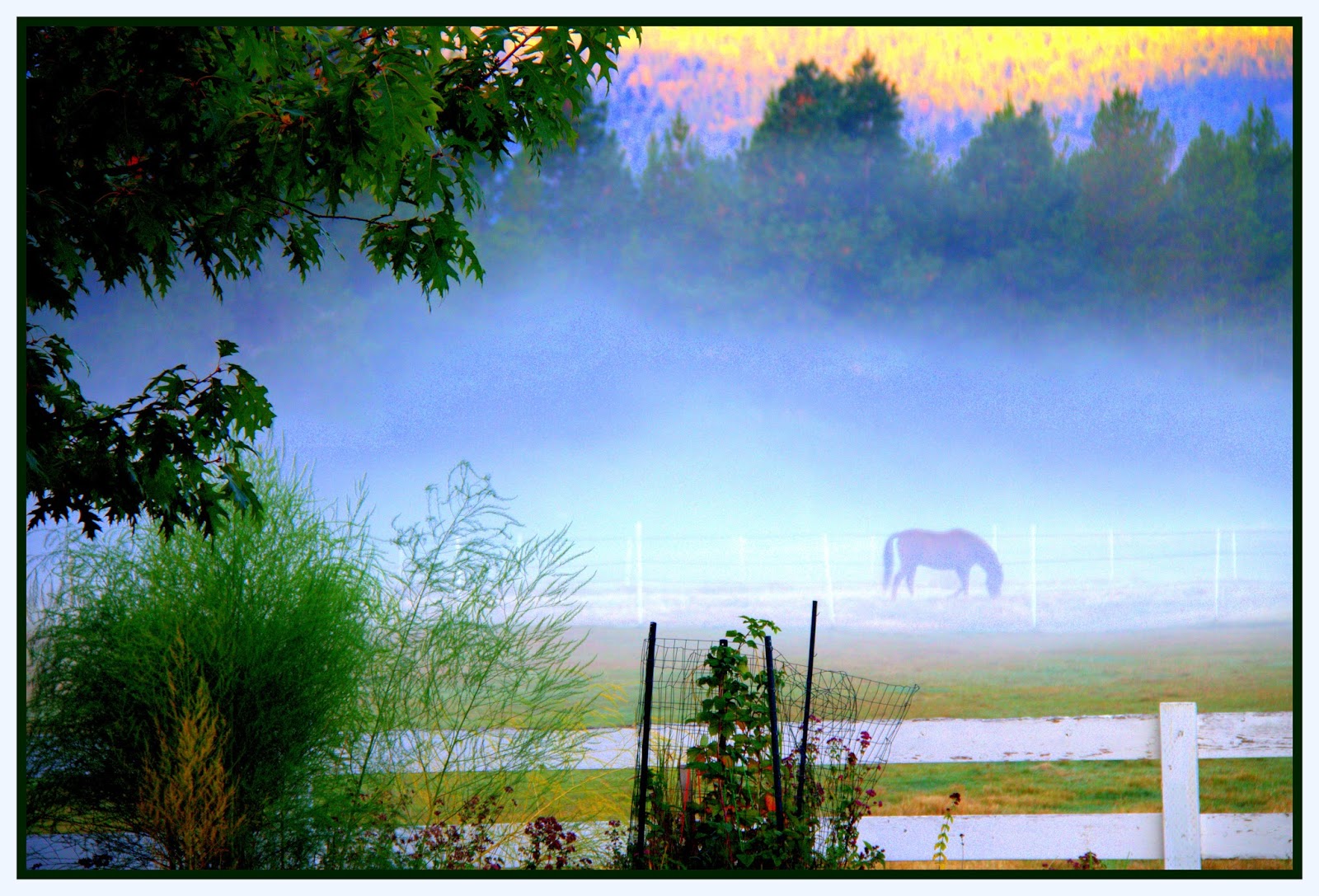 In the morning a cloud of mist rolling through the pasture cut quite a scene as Lefty enjoyed his breakfast.