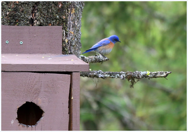 Imagine my delight yesterday when I discovered a pair of bluebirds actually hanging out at what is probably their summer home.