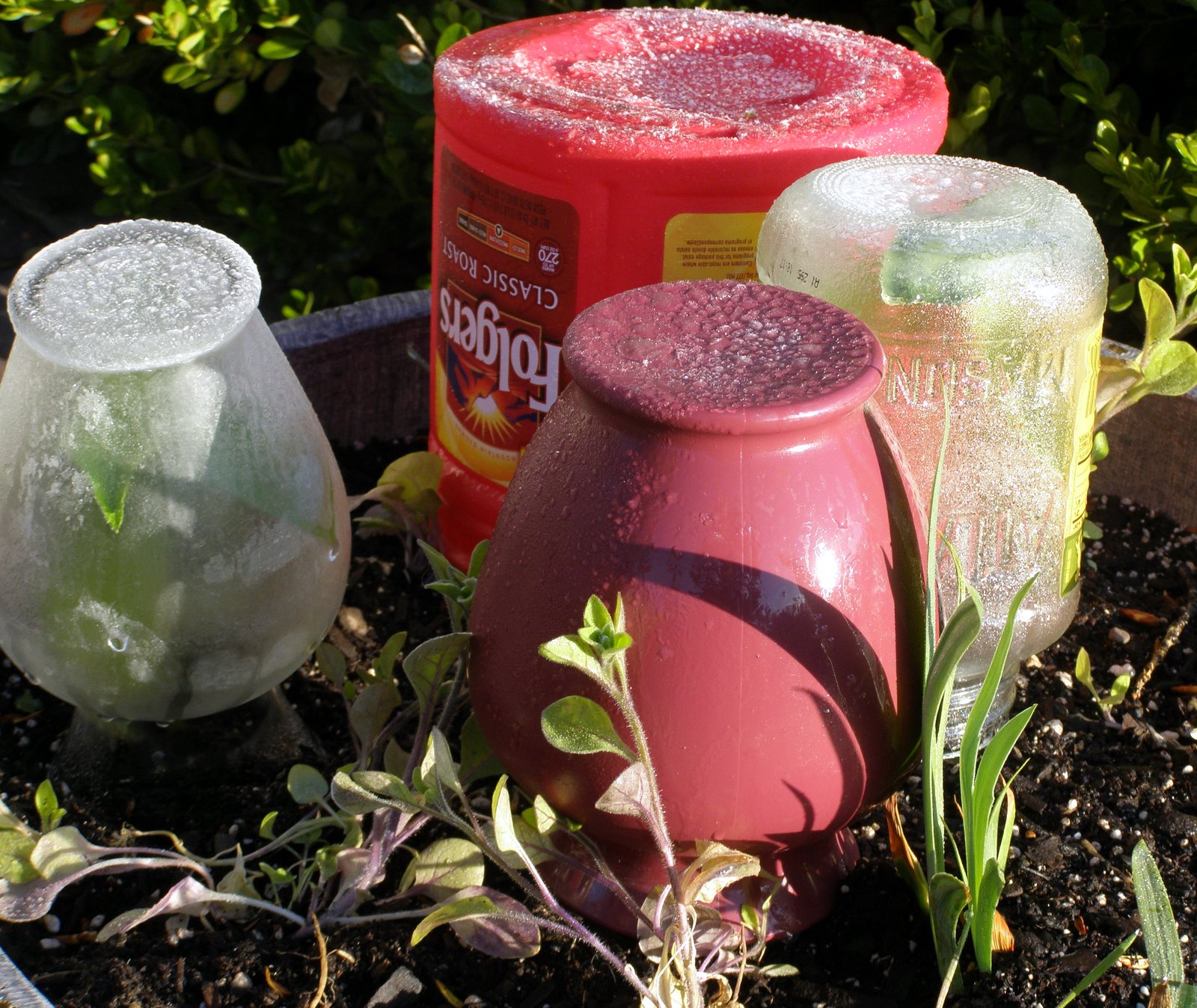 Some flowers still have jars over them cuz Tom Sherry told us this frost would last until 9 a.m.