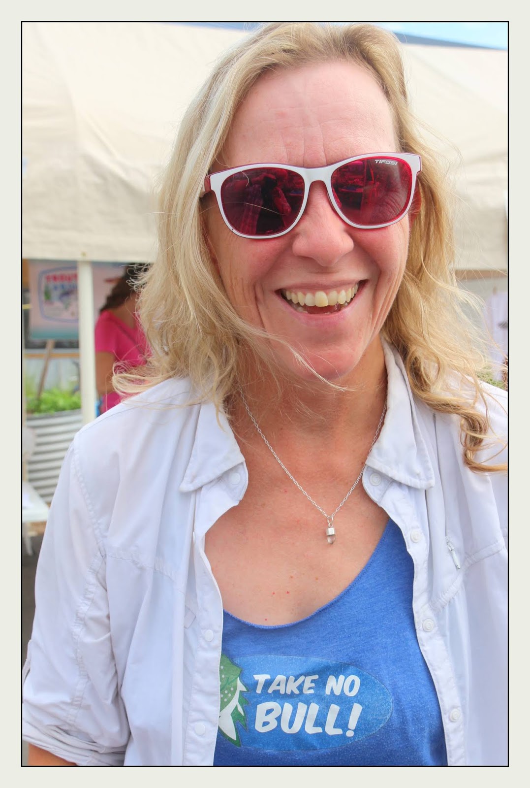Fellow journalist and writer Susan Drumheller, spreading a fishy but important message. |