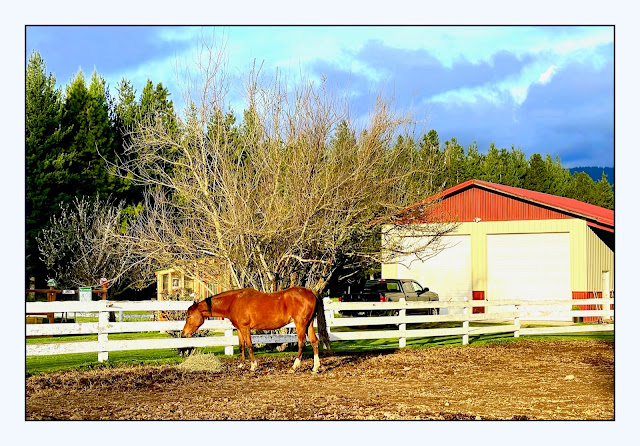 This morning marked what has become my personal ultimate with the horses---their winter hair almost gone, their bodies shining in the morning sunlight and bright green grass enhancing the scene.